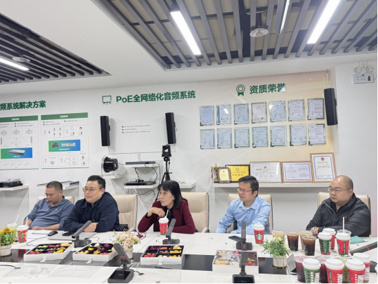 調(diào)研組一行首先走訪(fǎng)深圳同創(chuàng)音頻技術(shù)有限公司。調(diào)研組與企業(yè)創(chuàng)始人賀玉龍、寧星忠等進(jìn)行座談交流,深入了解同創(chuàng)公司發(fā)展歷程、數(shù)字音頻矩陣產(chǎn)品的技術(shù)創(chuàng)新點(diǎn)及全過(guò)程質(zhì)量控制體系,詳細(xì)了解了產(chǎn)業(yè)發(fā)展現(xiàn)狀、技術(shù)瓶頸與標(biāo)準(zhǔn)化需求。